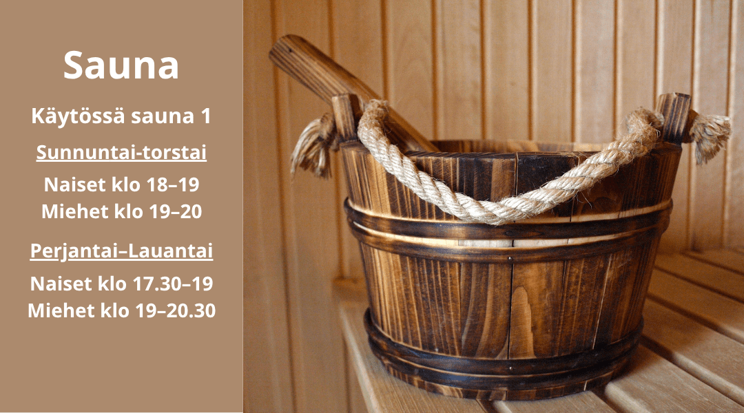 Su 19.4.2026 käytössä sauna 1: Naiset klo 18-19 ja miehet klo 19-20